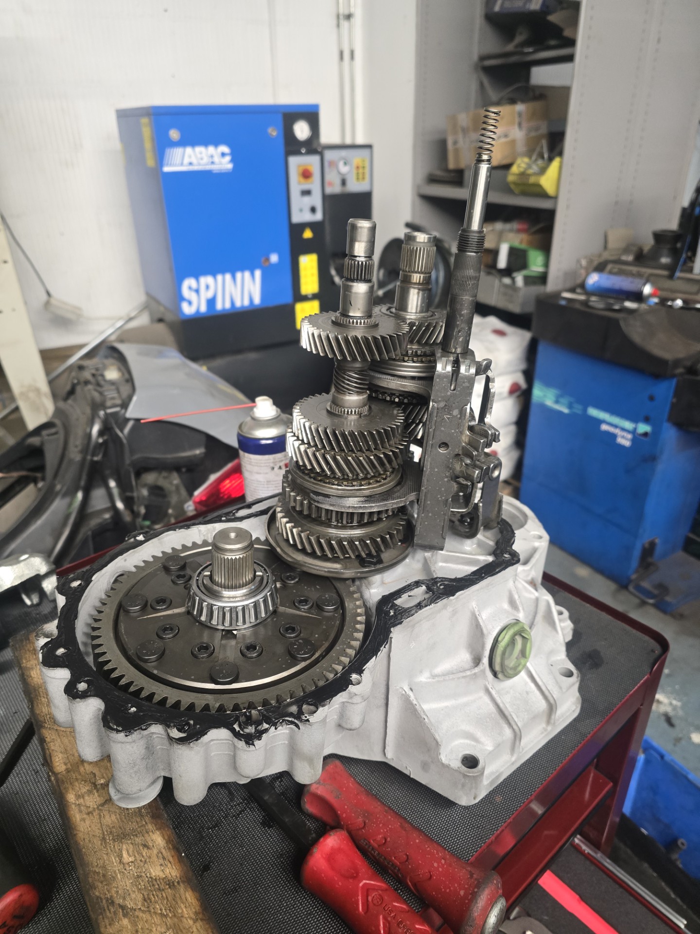 Naast het reviseren van motoren doen wij ook aan versnellingsbak revisies, net zoals deze VW golf 1 die klaar wordt gemaakt voor de Tulpen Rally